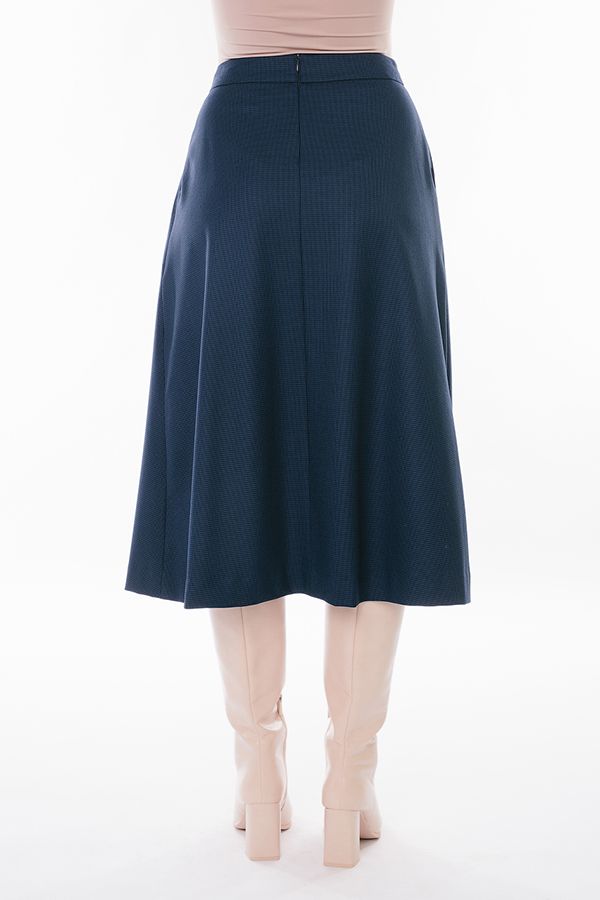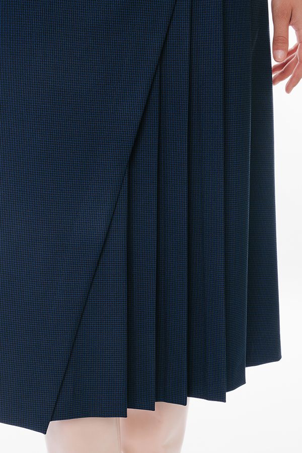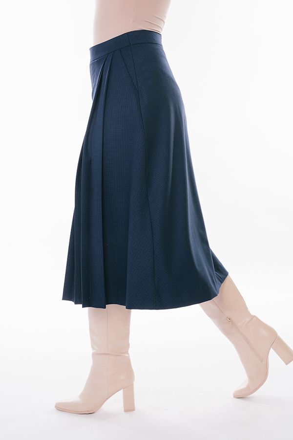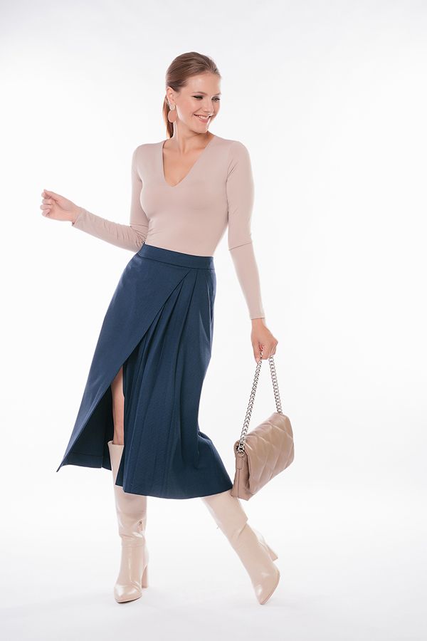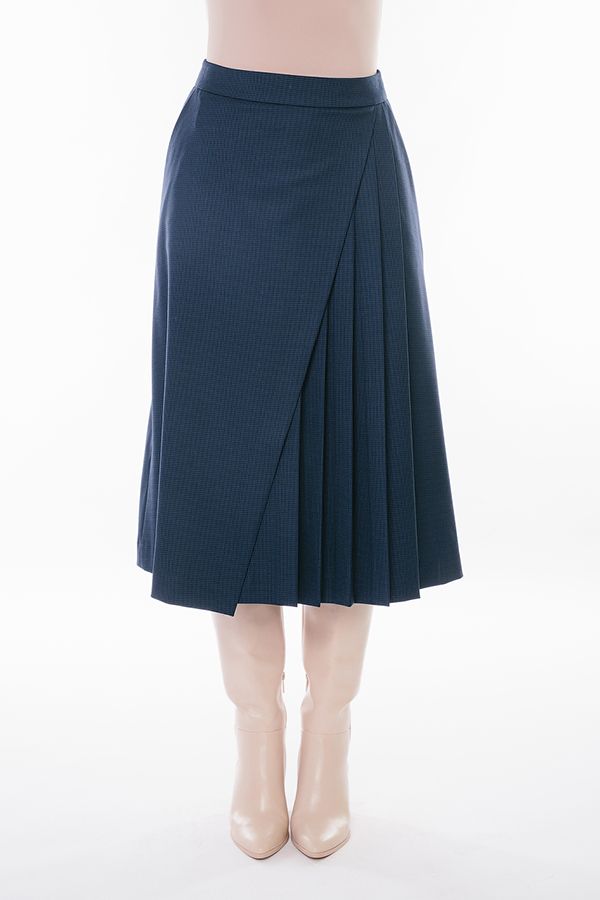 Эффектная модель юбки А-силуэта на фигурным поясе. Детали спереди: карманы с отрезным бочком, асимметричный запах на левую сторну. По правой стороне юбки- пять складок. Сзади в среднем шве потайная молния. Длина изделия 79 см. Размер модели на фото: 44. Параметры модели: 89-62-97. Рост модели на фото: 175 см.