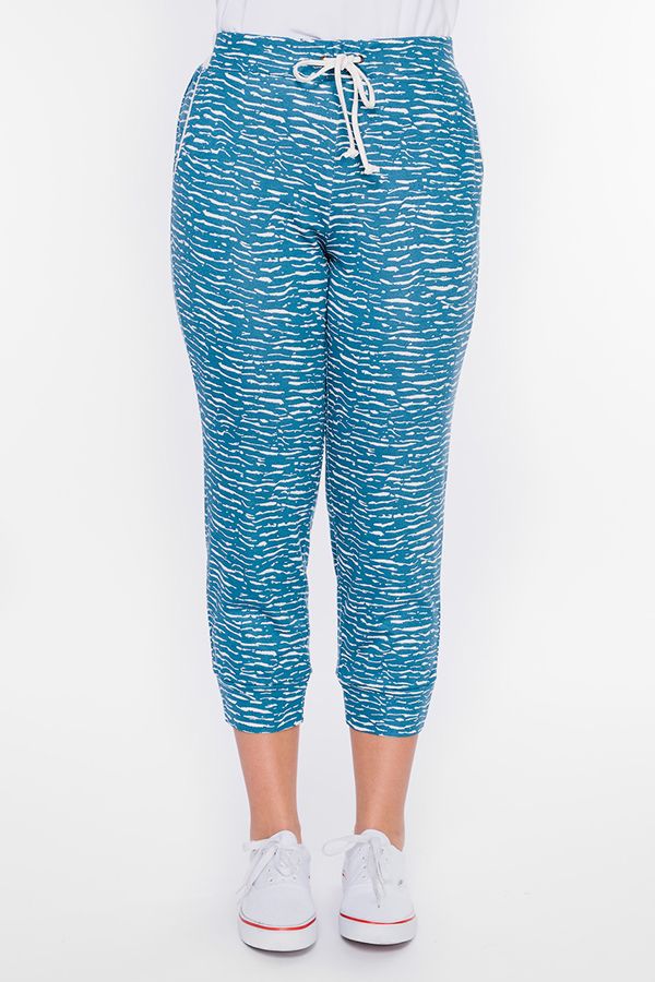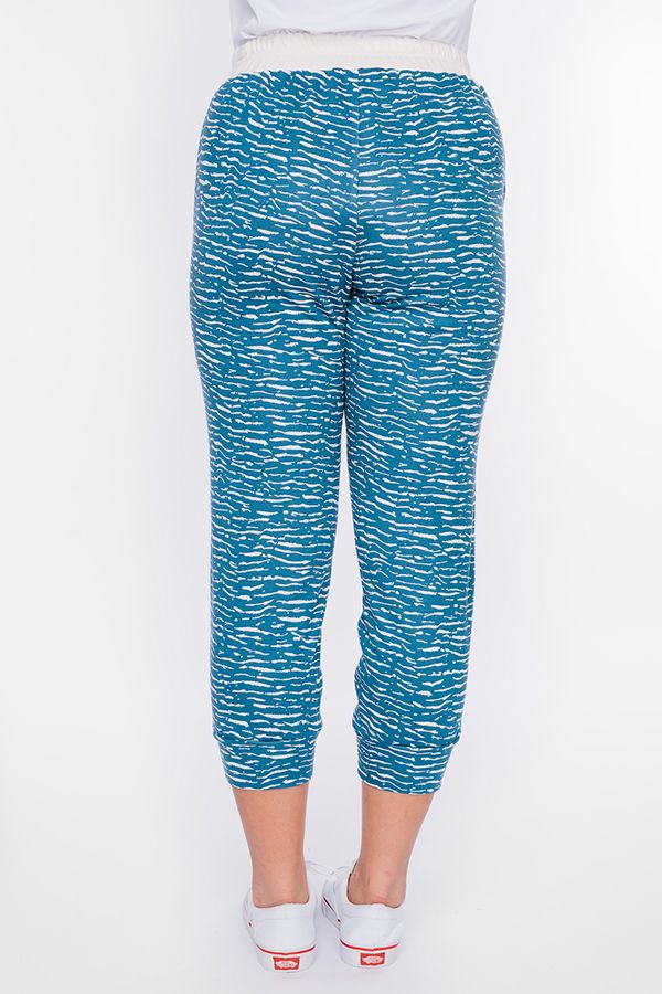 Трикотажные капри свободного силуэта, без застежки. Спереди карманы с контрастной отделкой. Пояс комбинированный, спереди из основного полотна, сзади контрастный. В поясе широкая резина и кулиска, люверсы. По линии низа манжета. Длина по внутреннему шву - 65см. Ширина низа - 13 см. *Числовые параметры соответствуют размеру 44. Размер модели на фото: 46. Параметры модели: 90-68-99. Рост модели на фото: 175 см.