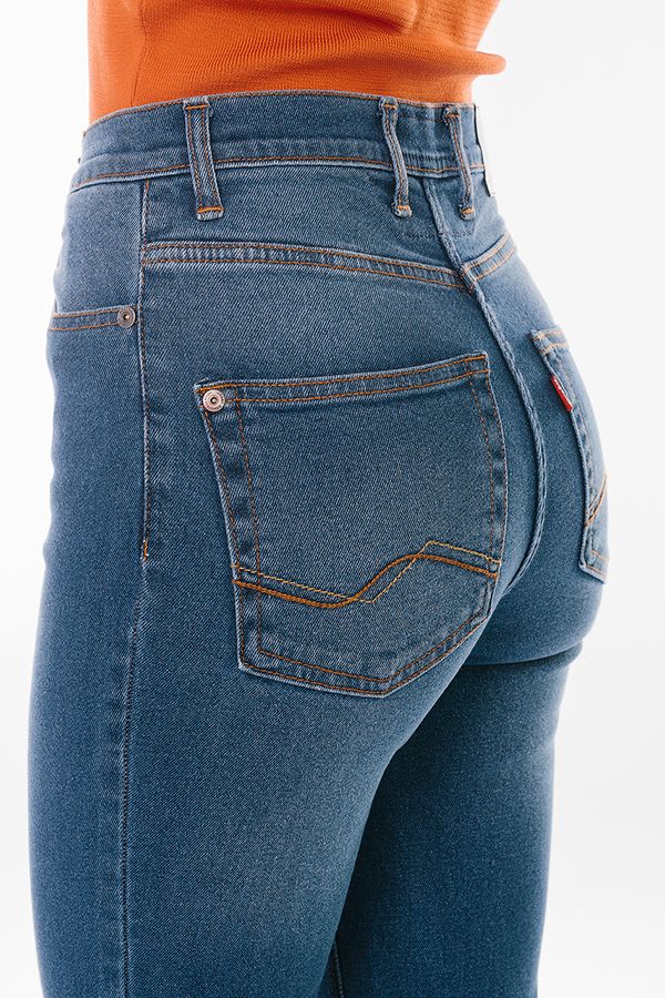 Женские джинсы цвета светлый индиго. Детали: спереди застежка на молнию и болт, Боковые карманы закреплены хольнитенами, сзади, под кокеткой накладные карманы, на поясе шлевки. Длина по внутреннемц шву -80 см. Ширина по линии низа -19 см. Числовые параметры соответствуют размеру 46. Размер модели на фото: 44. Параметры модели :86-63-94. Рост модели : 173 см.