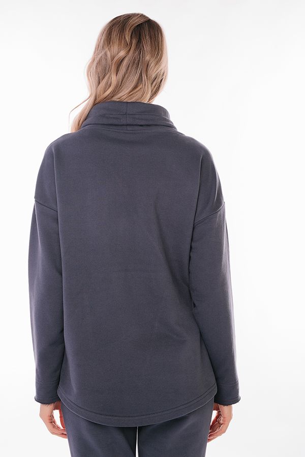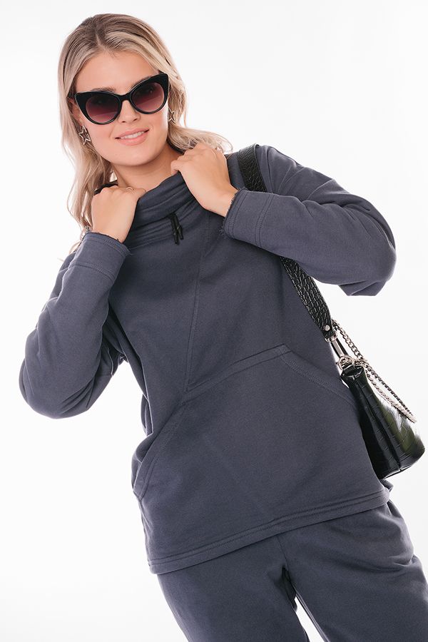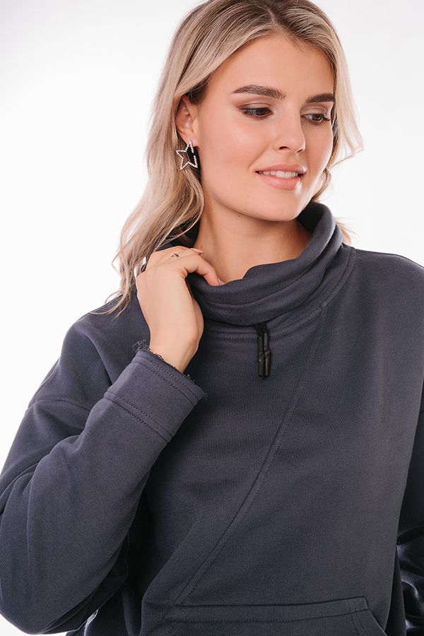 Худи благородного серого цвета. Воротник-труба на кулиске, оригинально обработанный край рукава, карман-кенгуру, асимметричный низ. Длина по спинке 70 см. Размер модели на фото: 44. Параметры модели: 86-63-94. Рост модели на фото: 173 см.