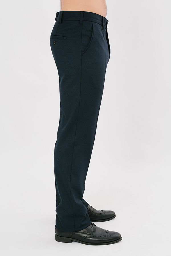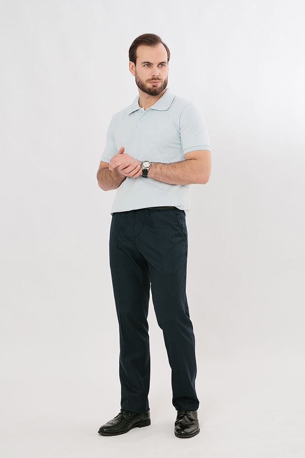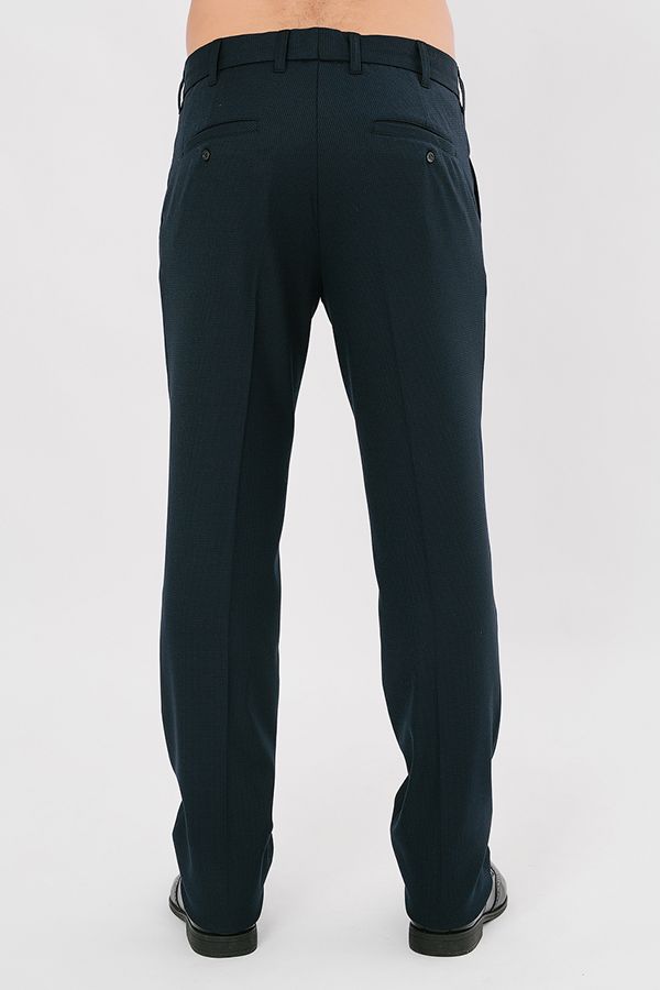 Брюки в классическом стиле со стрелками. Силуэт приуженый на 1,5 см. Детали спереди: застежка на молнию и пуговицу, двойные шлевки на поясе, боковые карманы с отрезным бочком, сзади Сзади два прорезных кармана в рамке, которые застегиваются на пуговицу.