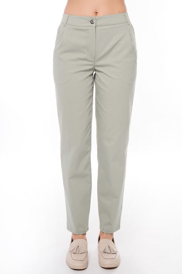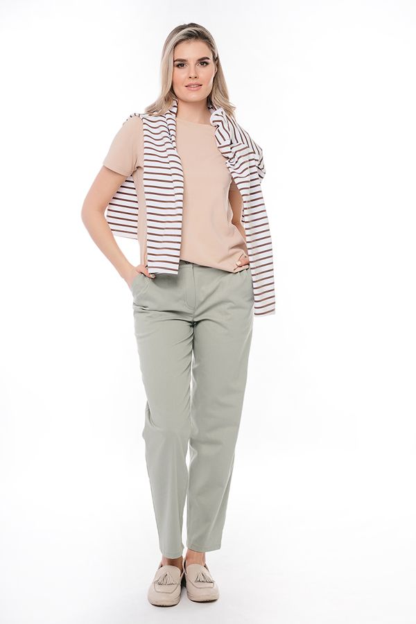 Молодежные брюки-бананы из ткани с большим содержанием хлопка. Детали: спереди застежка на молнию и пуговицу, боковые карманы с отрезным бочком, по линии пояса защипы, сзади под кокеткой накладные карманы с хольнитенами. На поясе шлевки. По линии низа брюк оригинальная отделка - две вертикальные вытачки. Длина по внутреннему шву - 72,5 см. Ширина по линии низа - 16,5 см. *Числовые параметры соответствуют размеру 42. Размер модели на фото: 42. Параметры модели: 86-63-94. Рост модели на фото: 173 см.
