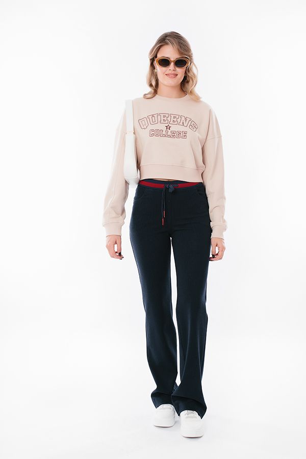 Комфортная модель брюк из синего трикотажного вельвета. Детали: спереди карманы с горизонтальным входом, сзади кокетка. Пояс с кулиской. Длина по внутреннему шву - 82 см. Ширина по линии низа - 21 см. *Числовые параметры соответствуют размеру 42. Размер модели на фото: 44. Параметры модели: 86-63-94. Рост модели на фото: 173 см.