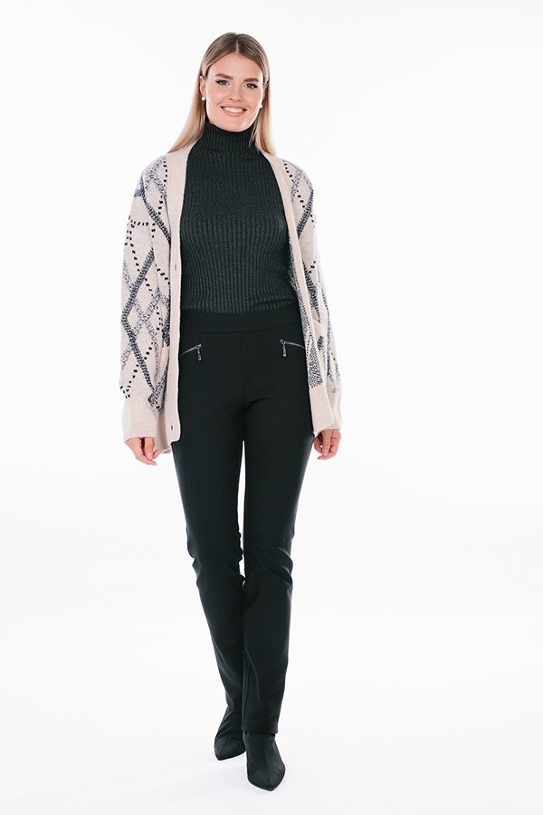 Брюки в молодежном стиле из трикотажного полотна на флисе. Модель без застежки на трикотажном поясе (в поясе резина 3,0 см), спереди имитация прорезных карманов на молнии, сзади кокетка. Числовые параметры соответствуют размеру 44. Длина по внутреннему шву - 85 см. Ширина по линии низа - 16,5 см. Размер модели на фото: 44. Параметры модели: 86-63-94. Рост модели на фото: 173 см.