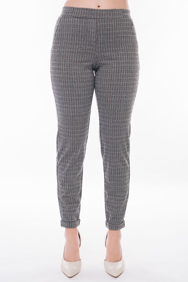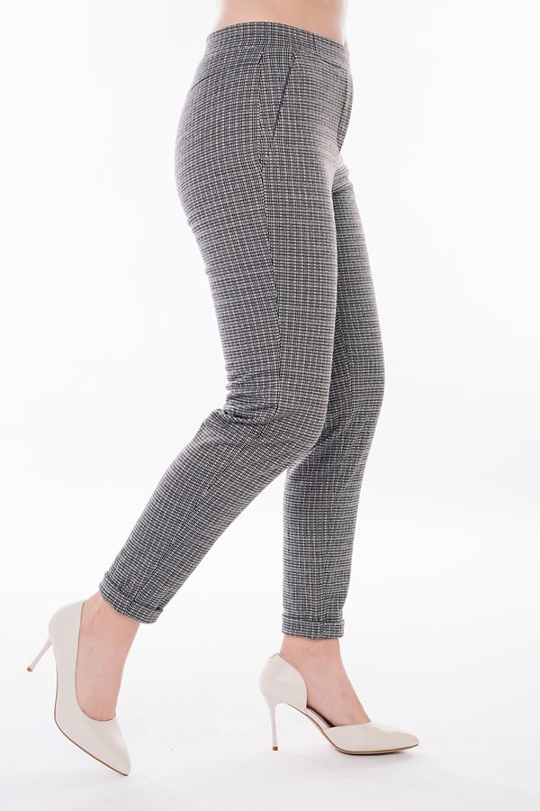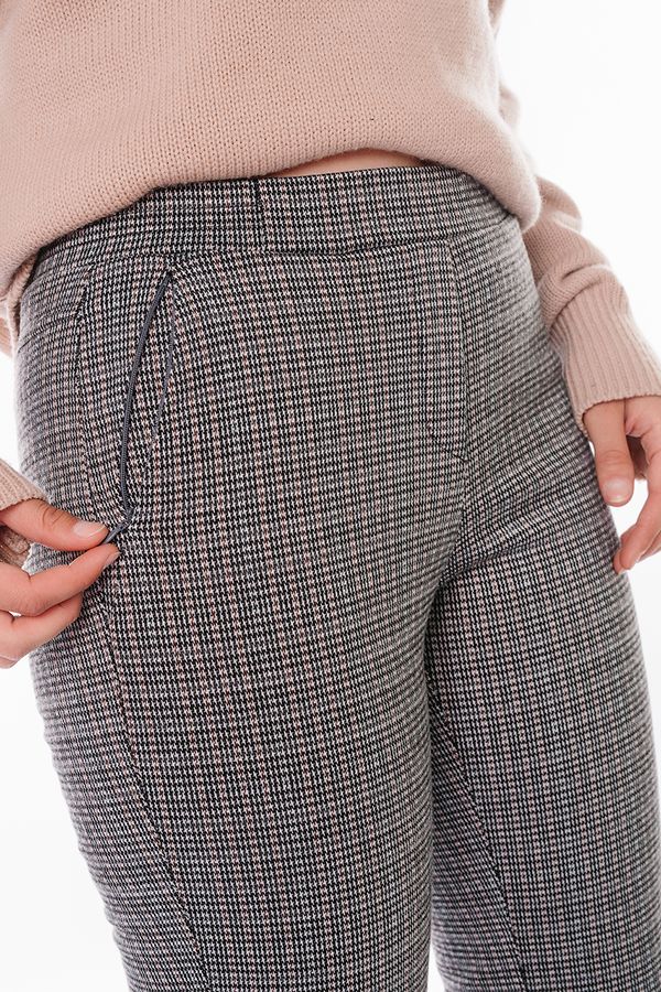 Модель брюк из теплого трикотажа. Детали: спереди имитация гульфика, боковые карманы на потайной молнии, сзади кокетка. В поясе резина. По линии низа отворот, при помощи которого можно регулировать длину брюк. Длина по внутреннему шву - 74 см. Ширина низа - 14 см. Числовые параметры соответствуют размеру 44. Размер модели на фото: 44. Параметры модели: 89-62-97. Рост модели на фото: 175 см.