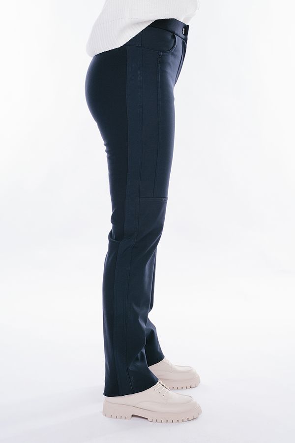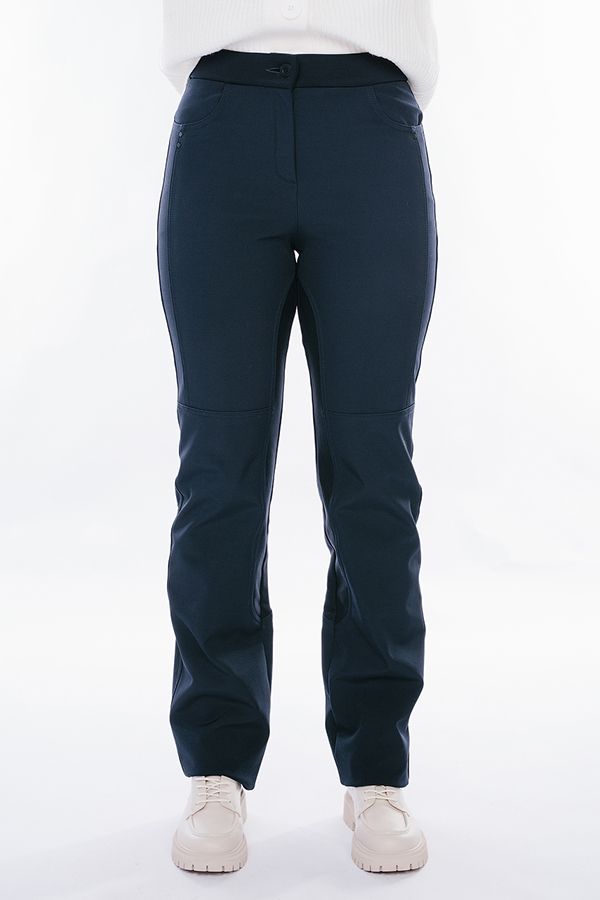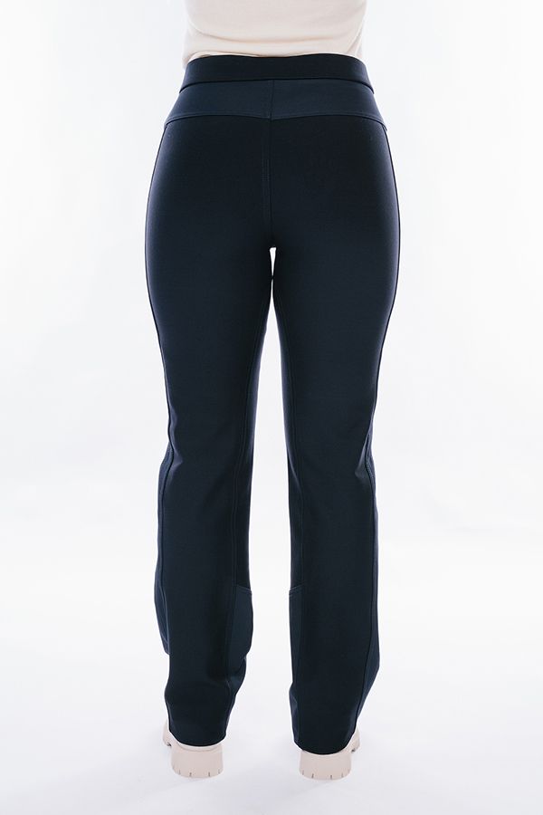 Брюки в спортивном стиле. По передней половинке ткань плащевка на флисе, по задней половинке трикотаж на флисе. Детали спереди: застежка на молнию и пуговицу, боковые карманы, в пояс вставлена эластичная лента. Детали сзади: кокетка. Длина по внутреннему шву - 87 см. Ширина низа - 19 см. *Числовые параметры соответствуют размеру 42. Размер модели на фото: 44. Параметры модели: 89-62-97. Рост модели на фото: 175 см.