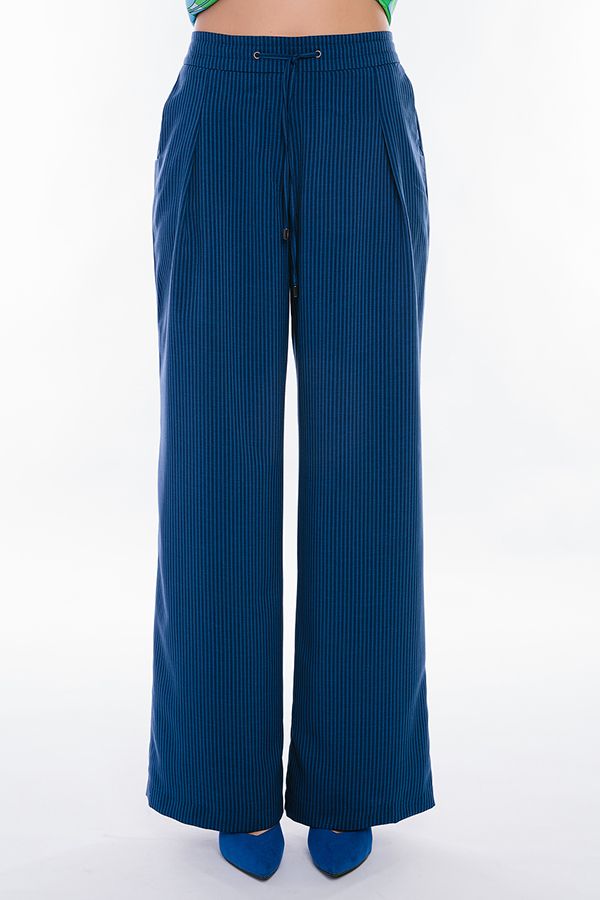 Легкие летние "невесомые" брюки силуэта "клеш от бедра". Спереди имитация гульфика, застроченные вытачки, в поясе кулиска. Оригинальные вертикальные карманы. По спинке , в поясе резина. Длина по внутреннему шву - 81 см. Ширина по линии низа -29см. *Числовые параметры соответствуют размеру 42. Размер модели на фото: 44. Параметры модели: 86-63-94 Рост модели на фото: 173 см.