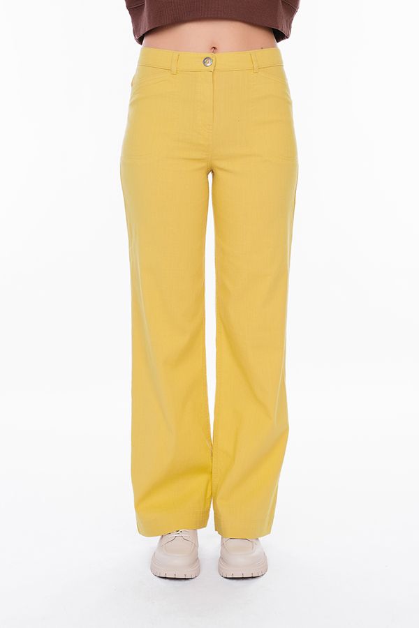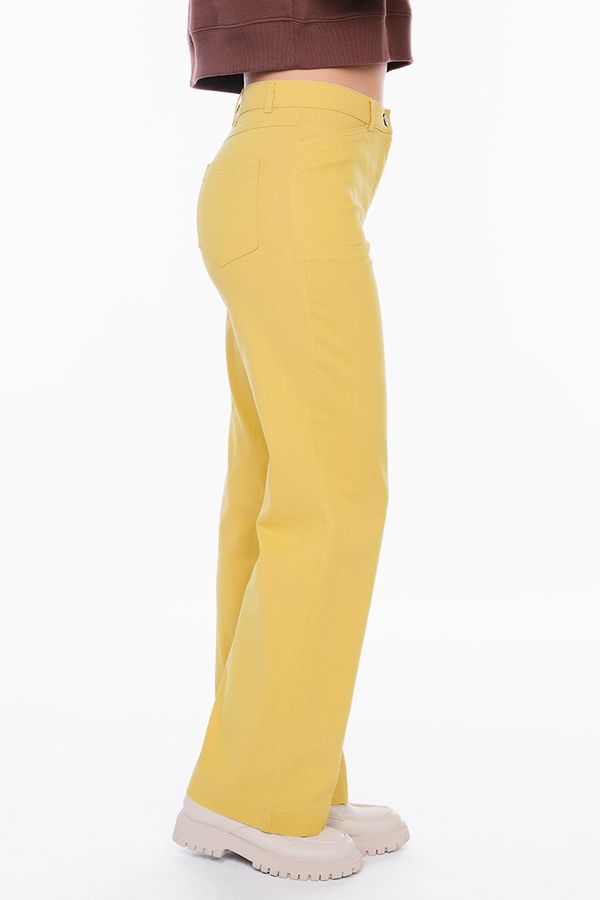 Брюки прямого силуэта из легкой хлопковой ткани. Спереди застежка на молнию и пуговицу, боковые карманы , сзади под кокеткой накладные карманы. Длина брюк по внутреннему шву- 80 см. Ширина низа- 26см. Числовые параметры соответствуют размеру 44. Размер модели на фото: 44. Параметры модели: 86-63-94. Рост модели на фото: 173 см.