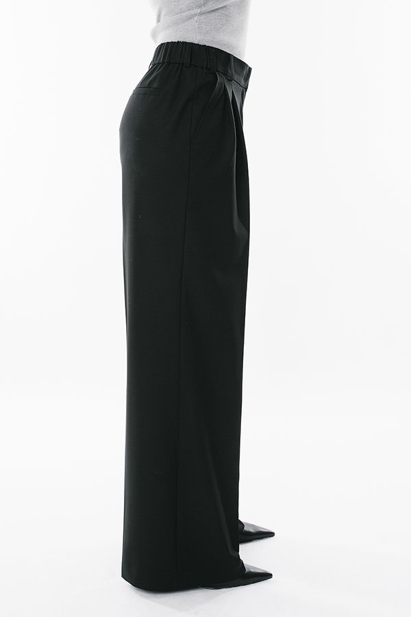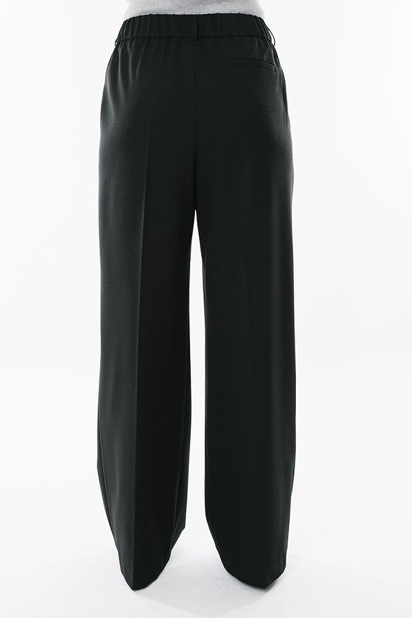 Элегантные брюки со стрелкой черного цвета. Детали: Спереди застежка на два потайных крючка и молнию, карманы с отрезнысм бочком, по поясу два защипа. Сзади , по правой половинке имитация кармана в рамке, по спинке резина в поясе, на посясе шлевки. Длина по внутреннему шву - 80 см. Ширина по линии низа: 31 см. *Числовые параметры соответствуют размеру 44. Размер модели на фото: 44. Параметры модели: 86-63-94. Рост модели на фото: 173 см.