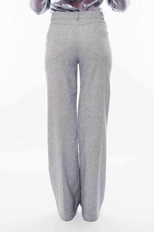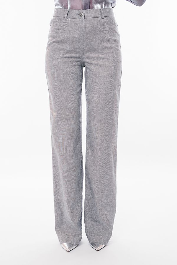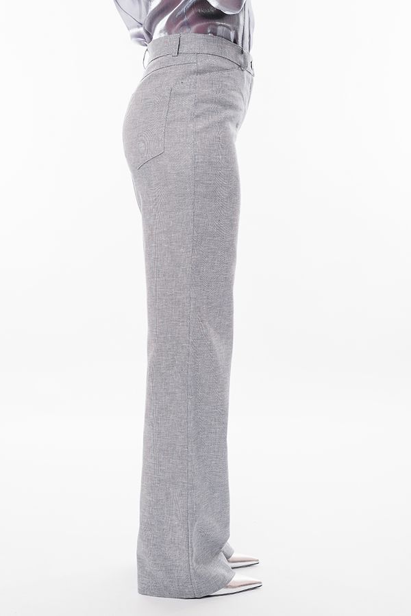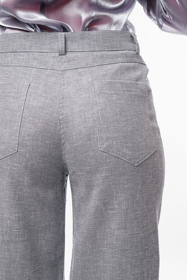 Брюки прямого силуэта из легкой ткани  с содержанием льна. Спереди застежка на молнию и пуговицу, боковые карманы , сзади под кокеткой накладные карманы. Длина брюк по внутреннему шву- 87 см. Ширина низа- 26см. Числовые параметры соответствуют размеру 42. Размер модели на фото: 44. Параметры модели: 86-63-94. Рост модели на фото: 173 см.
