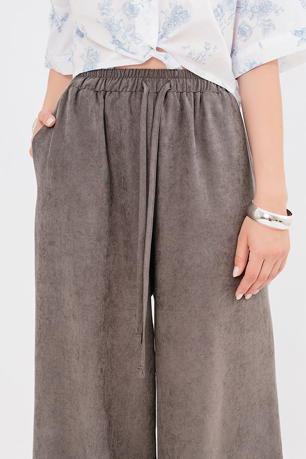 Широкие свободные летние брюки из трендовой ткани "Купро". Детали: карманы с вертикальным входом в боковом шве. В поясе резина на сборке, кулиска. Длина по внутреннему шву - 78 см. Ширина по линии низа: 33,5 см. *Числовые параметры соответствуют размеру 44. Размер модели на фото: 46. Параметры модели: 94-65-100. Рост модели на фото: 175 см. Внимание! Размеры сдвоенные: 44-46, 48-50, 52-54.