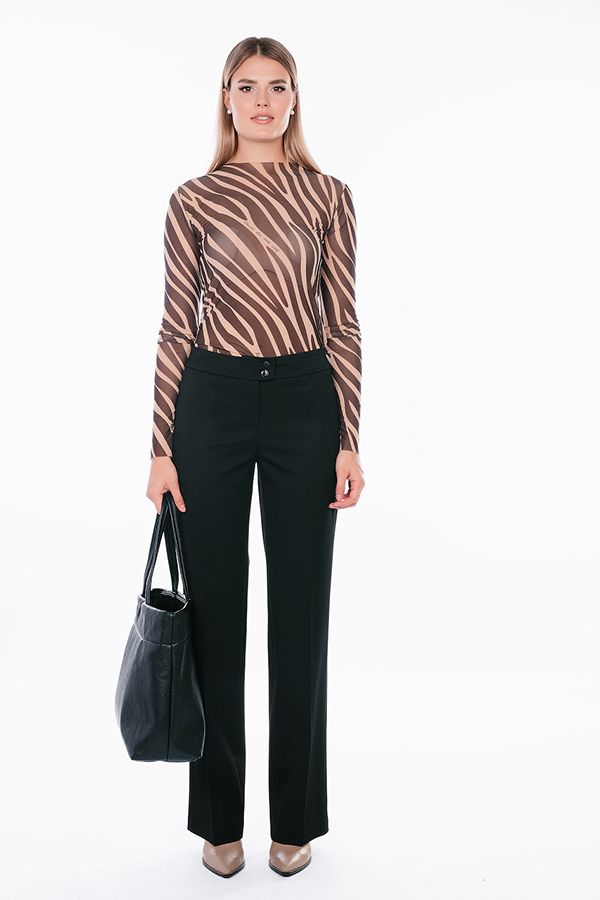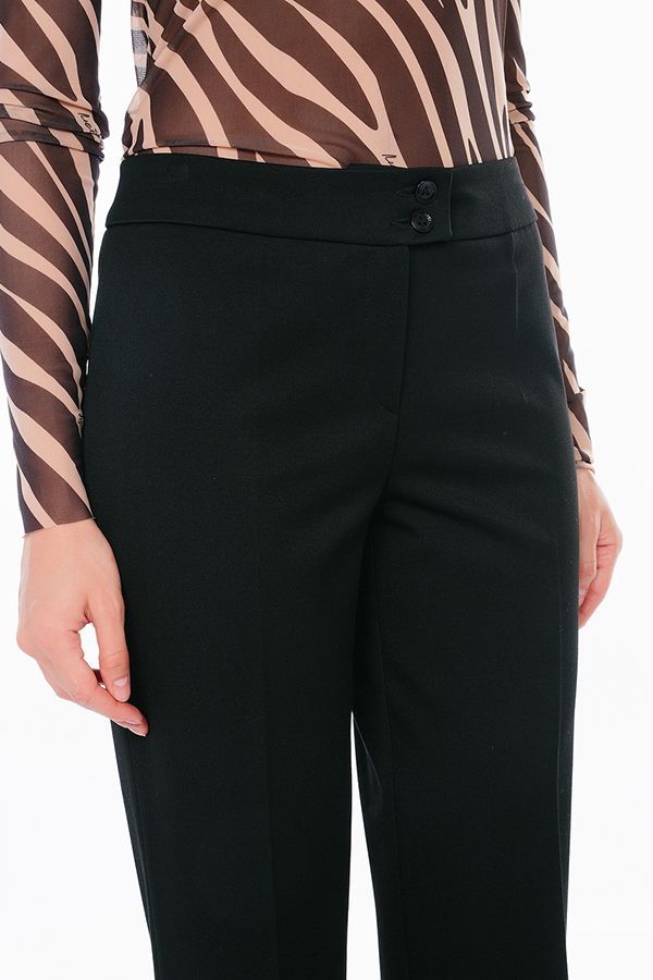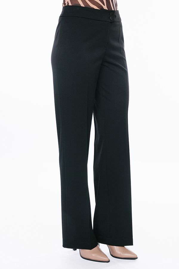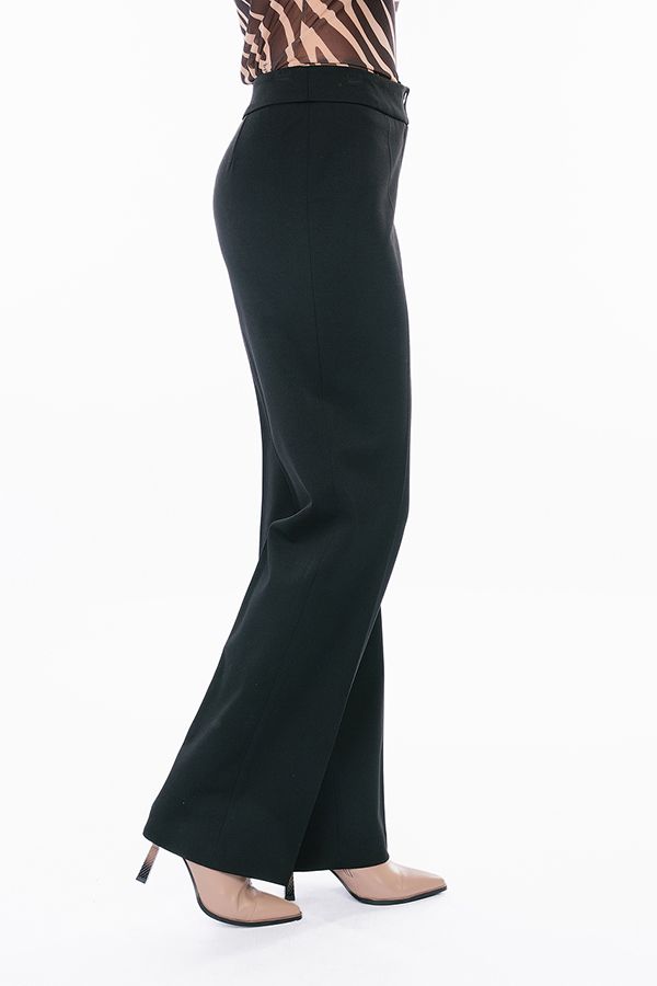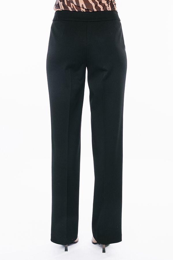 Брюки в классическом стиле со стрелкой из черного габардина. Силуэт: прямой от бедра. Детали: спереди застежка на молнию и две пуговицы. Практичная модель для офисных сотрудников. Идеальная посадка на фигуры больших размеров. Идеально подходит на полные ножки. Уход за изделием: стирка при t=30. *Числовые параметры соответствуют размеру 42. Длина по внутреннему шву 85 см. Ширина по линии низа: 23 см. Размер модели на фото: 44 Параметры модели: 86-63-94. Рост модели на фото: 173 см.