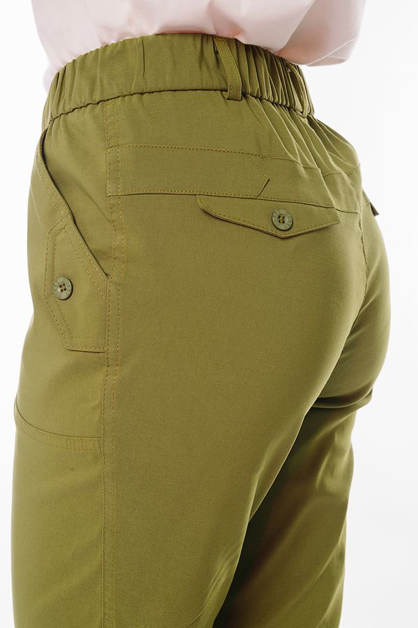 Капри в спортивном стиле. Детали: спереди застежка на молнию и пуговицу, полноценные боковые карманы с оригинальной отделкой. Шлевки. В поясе эластичная лента, которая надежно фиксирует брюки на фигуре. Сзади под оригинальной кокеткой имитация карманов с клапаном. По линии низа регулируемый отворот с патой. Уход за изделием: стирка при t=30. *Числовые параметры соответствуют размеру 44. Длина по внутреннему шву - 51 см. Ширина по линии низа - 19 см. Размер модели на фото: 44. Параметры модели: 86-63-94. Рост модели на фото: 173 см.