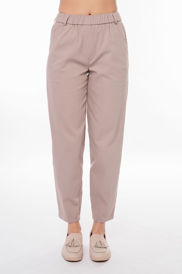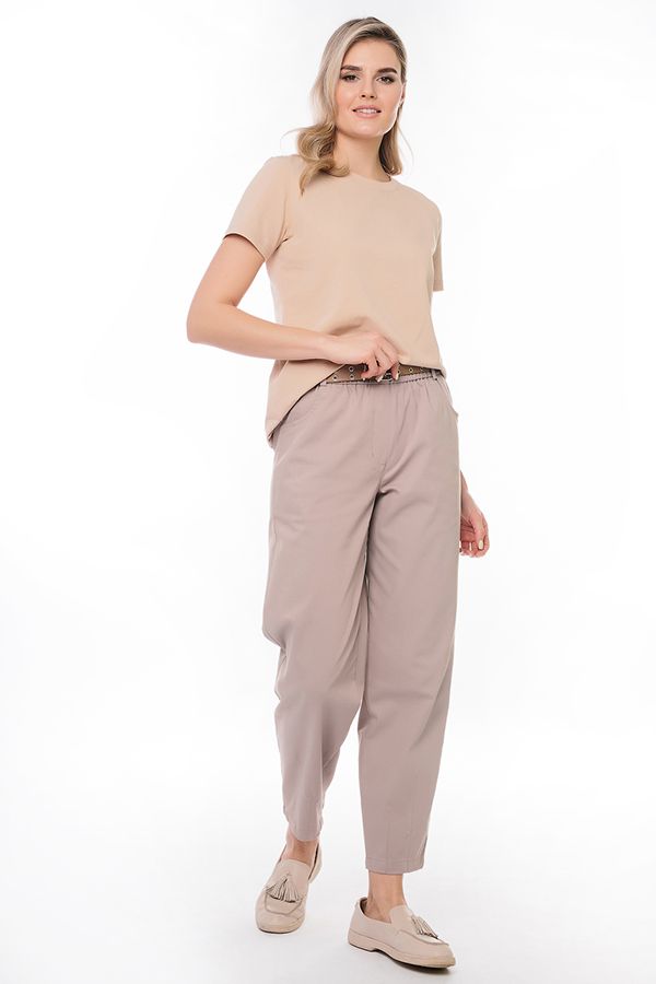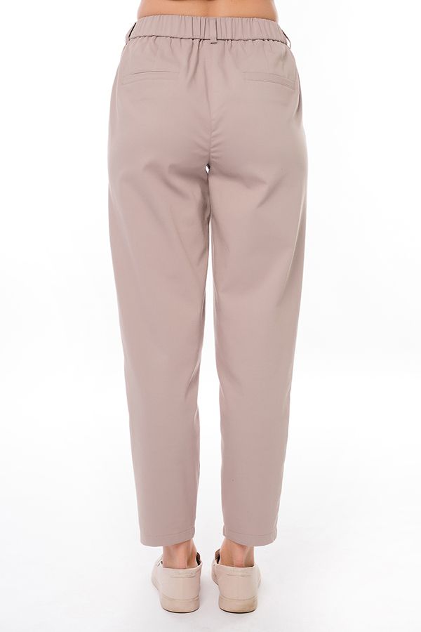 Молодежные брюки-бананы из ткани с большим содержанием хлопка . Детали: спереди имитация гульфика, боковые карманы с горизонтальным входом, сзади под вытачками листочки с имитацией кармана. На поясе шлевки. В поясе резина. По передней половинке , по линии низа брюк- две вертикальные вытачки.  Длина по внутреннему шву - 71 см. Ширина низа - 15,5см. *Числовые параметры соответствуют размеру 42. Размер модели на фото: 42. Параметры модели: 86-53-94. Рост модели на фото: 173 см.