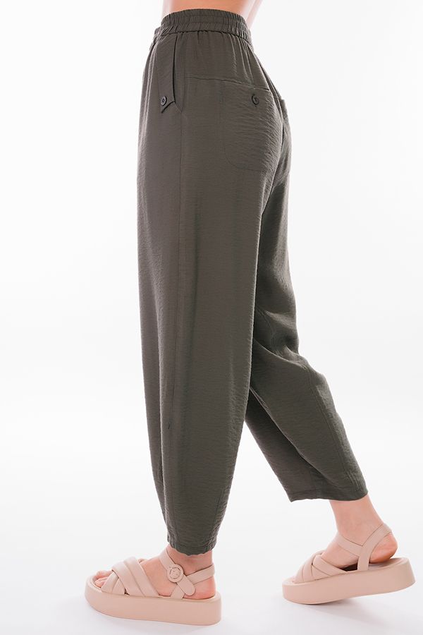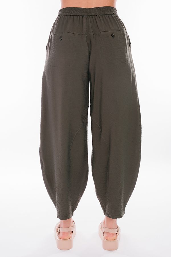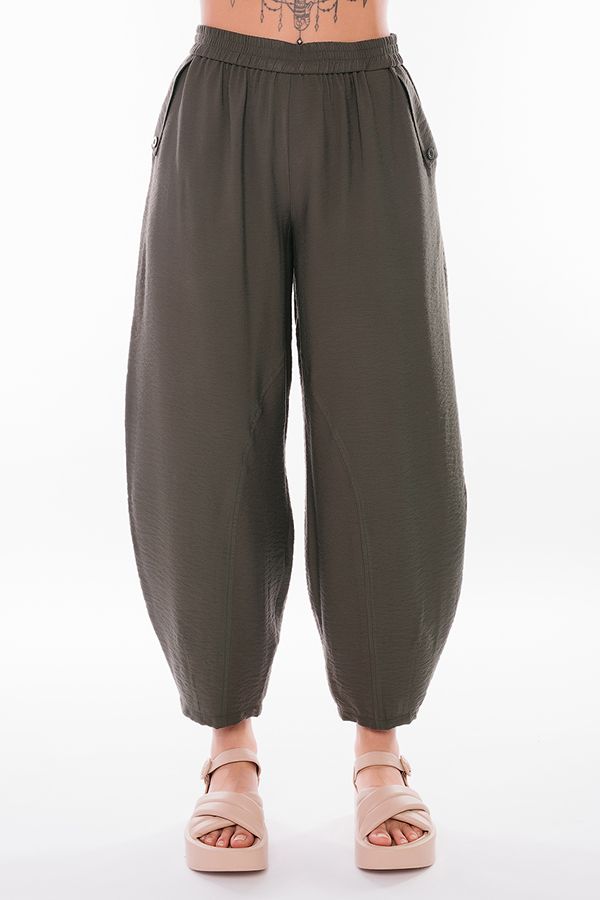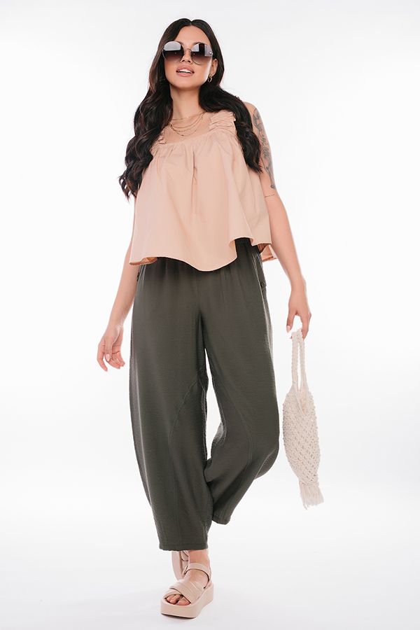 Брюки свободного кроя, близкие по силуэту к брюкам "алладин", из легкой вискозной летней ткани. Детали: спереди имитация гульфика, боковые карманы с отрезным бочком, с оригинальным отлетным клапаном и пуговицей. Сзади под кокеткой прорезные карманы на пуговице. В поясе резина. По передней и задней половинке брюк фигурные резы, по низу вытачки. Длина по внутреннему шву - 71 см. Ширина по линии низа - 18 см. *Числовые параметры соответствуют размеру 40. Размер модели на фото: 46. Параметры модели: 86-64-100. Рост модели на фото: 174 см.