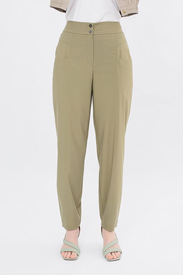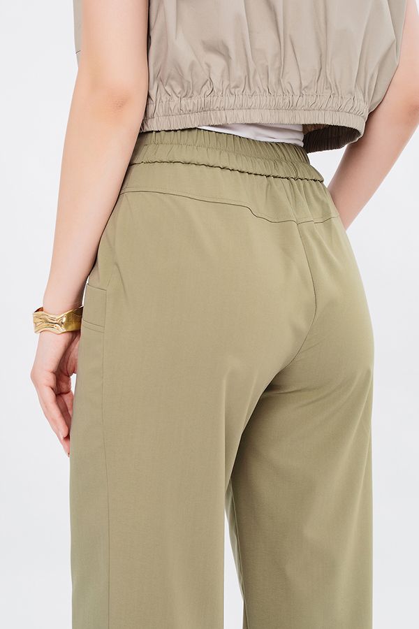 Летние легкие  женские брюки О-образного силуэта на рост 176 см. Детали: спереди застежка на молнию и две пуговицы, прорезные карманы с подкройным бочком, сзади кокетка. По спинке в поясе резина на сборке. Длина по внутреннему шву - 76 см. Ширина низа - 16 см. *Числовые параметры соответствуют размеру 44. Размер модели на фото: 46. Параметры модели: 94-65-100. Рост модели на фото: 175 см. Полномерные!