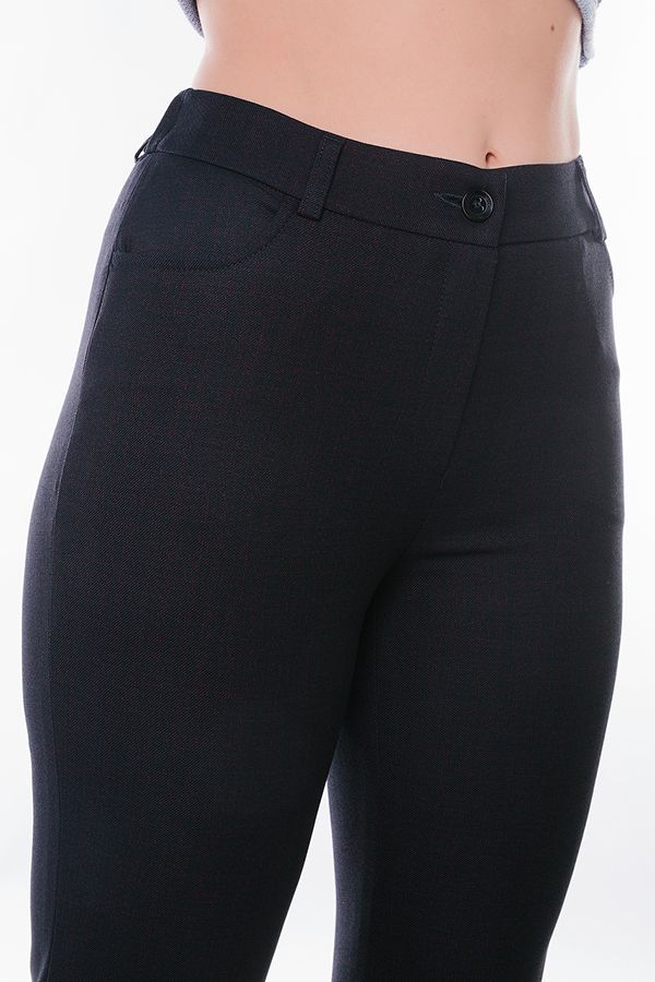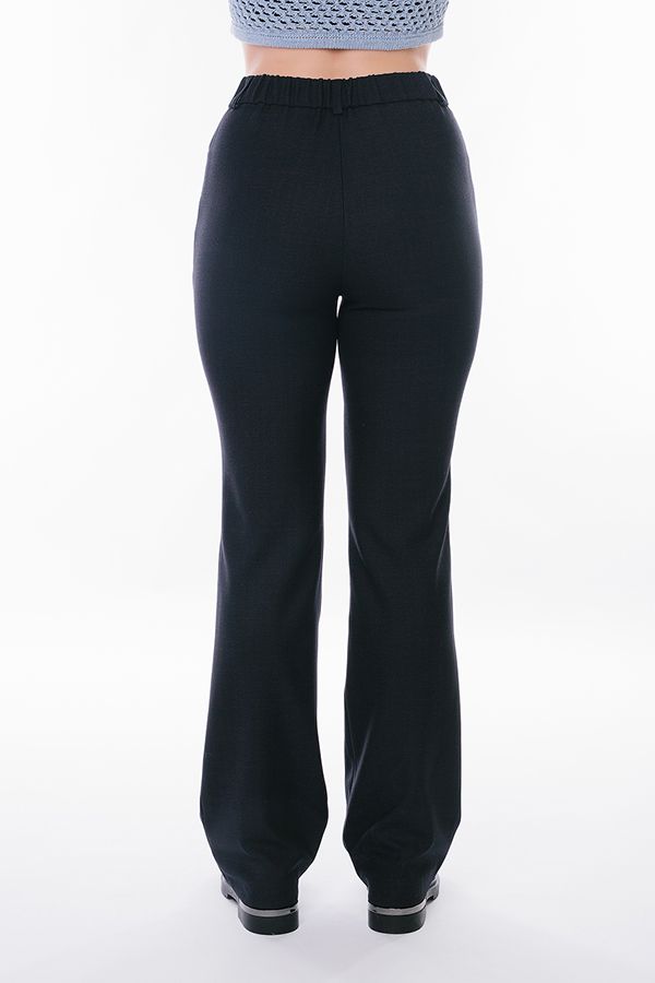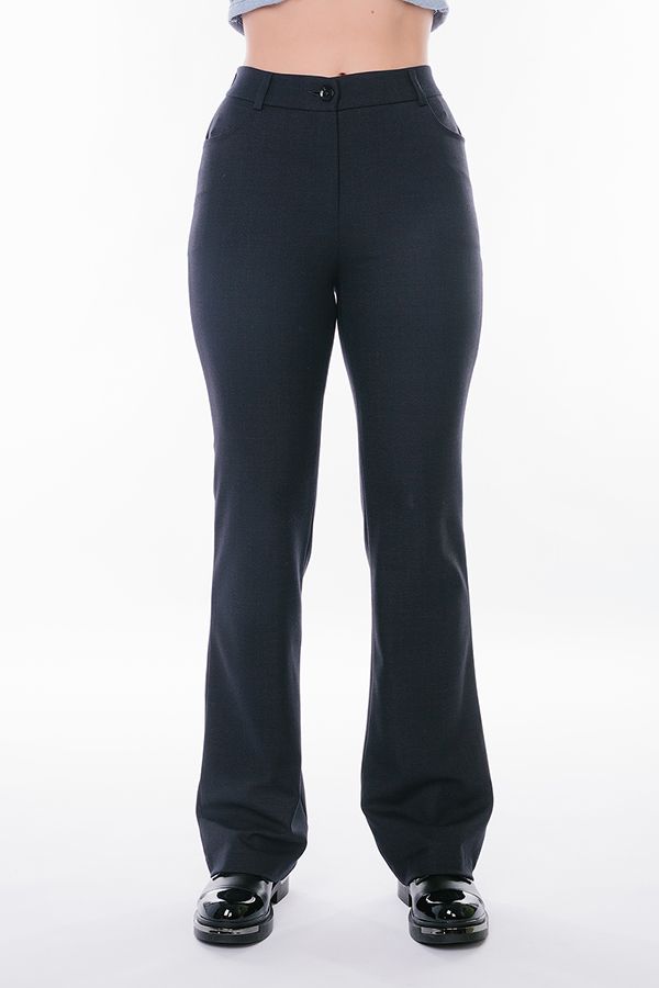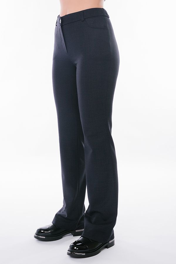Модель брюк в полную длину, с небольшим клешем от колена. Детали: спереди застежка на молнию и пуговицу, боковые карманы с горизонтальным входом. Сзади в поясе резина на сборке, шлевки на поясе. Длина по внутреннему шву - 83 см. Ширина низа - 23 см. Числовые параметры соответствуют размеру 44. Размер модели на фото: 44. Параметры модели: 89-62-97. Рост модели на фото: 175 см.