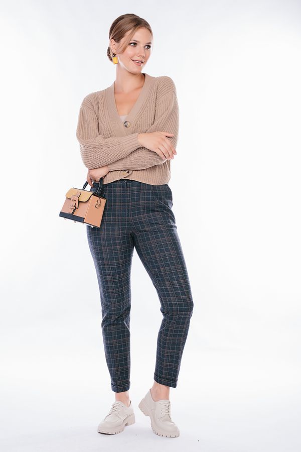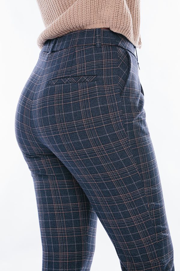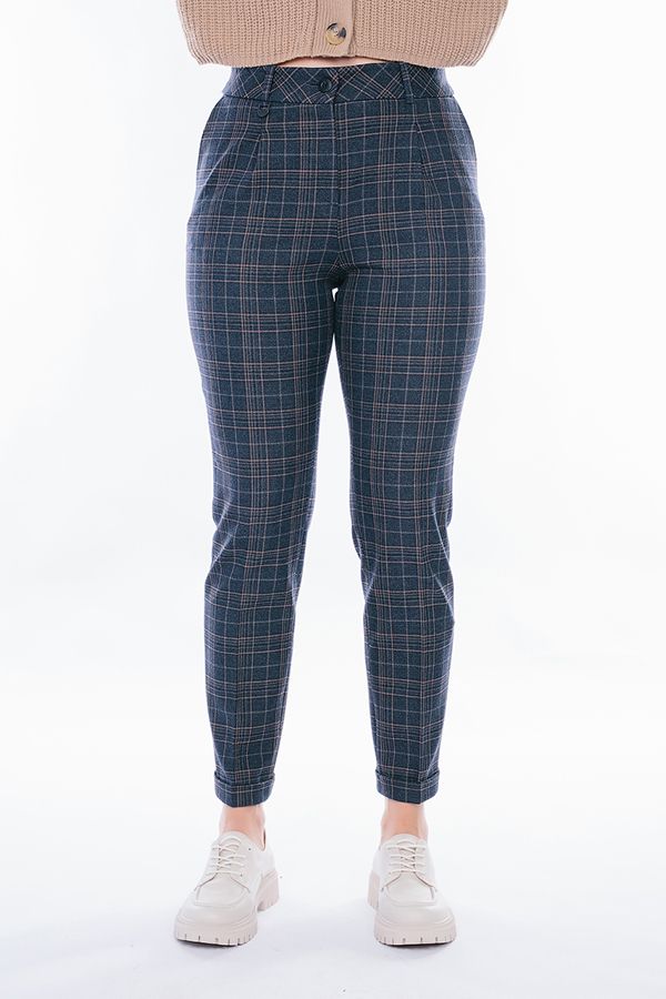Модель в городском стиле. Детали: по передней половинке защипы, шлевки на фигурном поясе, застежка на молнию и пуговицу, боковые карманы с отрезным бочком. Сзади под вытачками листочка с имитацией кармана. По задней половинке брюк, в поясе резина на сборке. Длина брюк регулируется отворотом по линии низа. Длина по внутреннему шву - 73,5 см. Ширина по линии низа - 16 см. *Числовые параметры соответствуют размеру 44. Размер модели на фото: 44. Параметры модели: 89-62-97. Рост модели на фото: 175 см.
