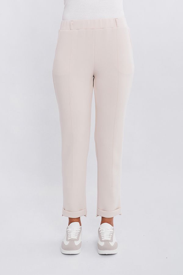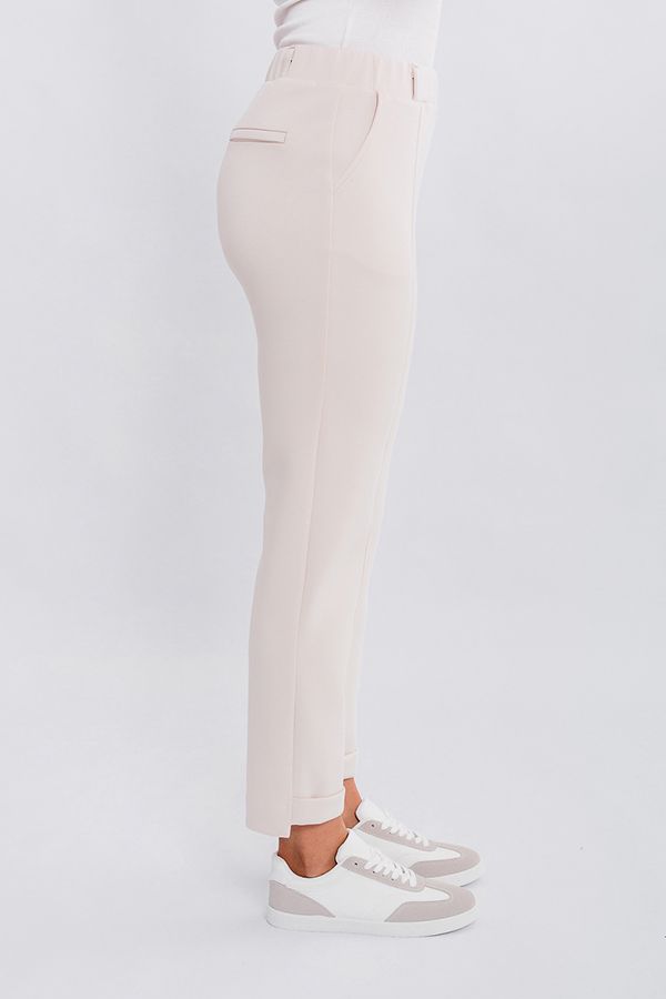 Комфортная модель брюк из современной ткани НЕОПРЕН. Брюки без замка, с застроченными стрелками по передней половинке (стрелка заканчивается за 15 см. до низа изделия). По бокам полноценные карманы, сзади имитация карманов оформленная листочкой. По низу изделия ступенька с отворотом по передней половинке. В поясе резина, шлевки. Длина по внутреннему шву передней половинки - 70 см., задней- 71,5 см. Ширина низа - 16 см. *Числовые параметры соответствуют размеру 40. Размер модели на фото: 44. Параметры модели: 86-63-94. Рост модели на фото: 173 см.