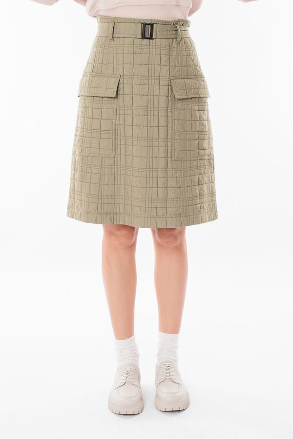 Молодежная модель юбки А-силуэта на подкладке. Юбка выполнена без пояса, с молнией в среднем шве. По линии талии шлевки. Поясок с металлической пряжкой. По передней половинке изделия накладные карманы с клапанами. Длина 61 см. Размер модели на фото: 44. Параметры модели: 86-63-94. Рост модели на фото : 173 см.