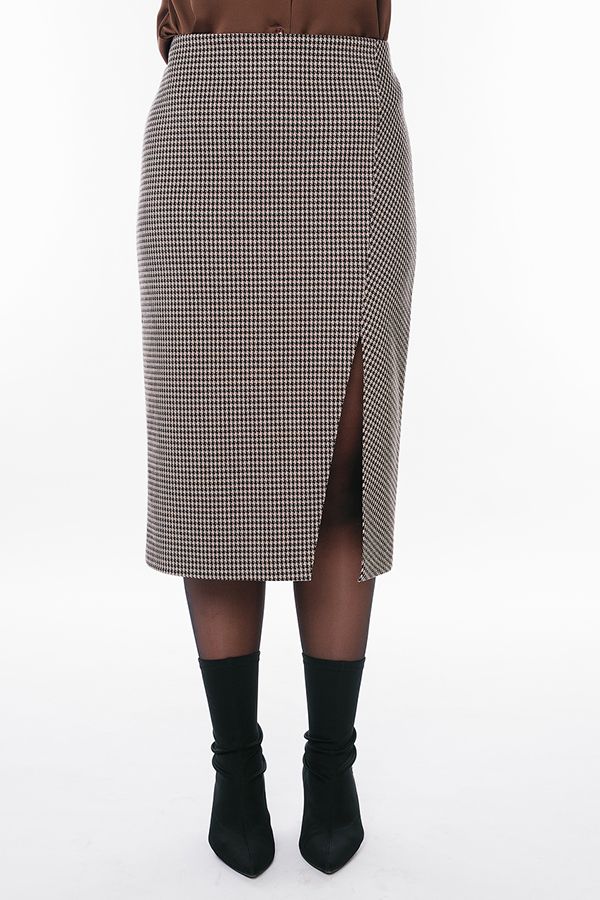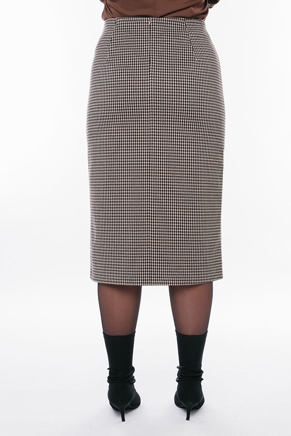 Элегантная юбка из трикотажного полотна без пояса, на подкладе. Длина миди.По передней половинке, слева разрез. По задней половинке вытачки, застежка на потайную молнию в среднем шве. Длина изделия 74 см. Размер модели на фото: 48. Параметры модели: 94-66-102. Рост модели на фото: 175 см.