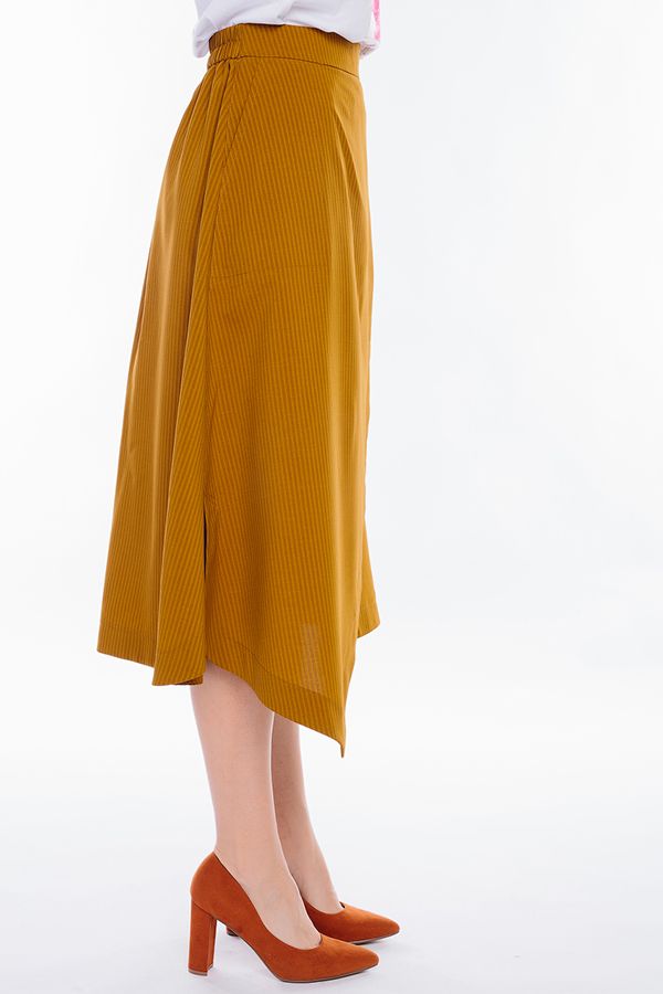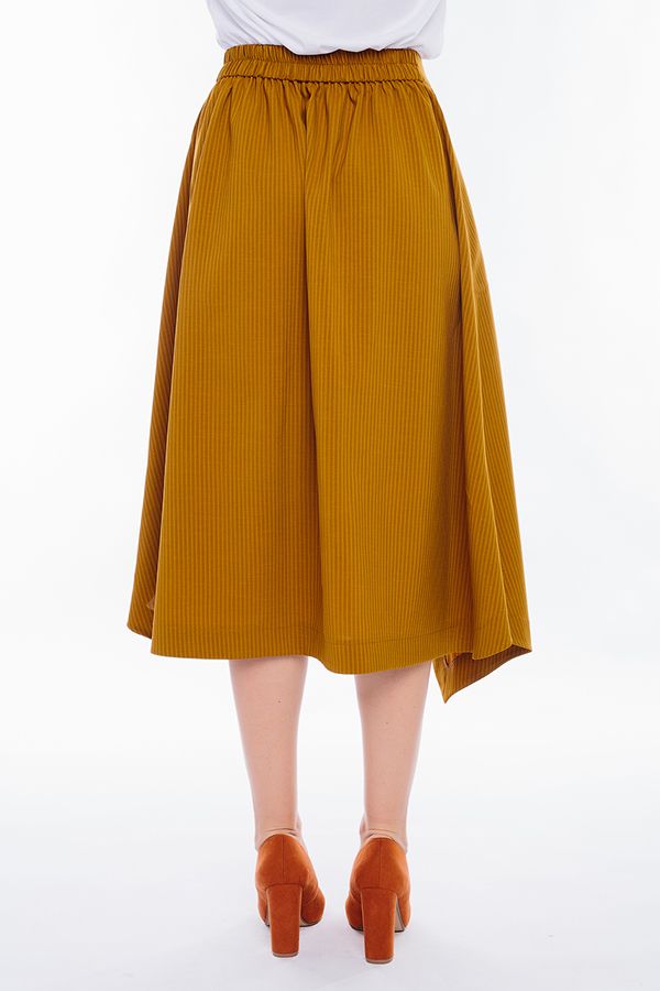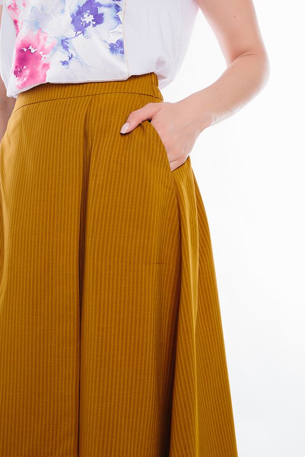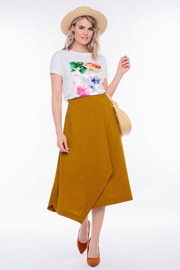 Легкая летняя модель юбки А-силуэта. Детли спереди: карманы с отрезным бочком, асимметричный запах, По низу в боковых швах разрезы с оригинальной обработкой, Сзади сборка, по поясу резина. Длина изделия 77 см. Размер модели на фото: 44. Параметры модели: 86-63-94. Рост модели на фото: 173 см.
