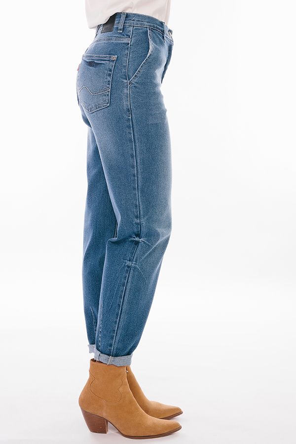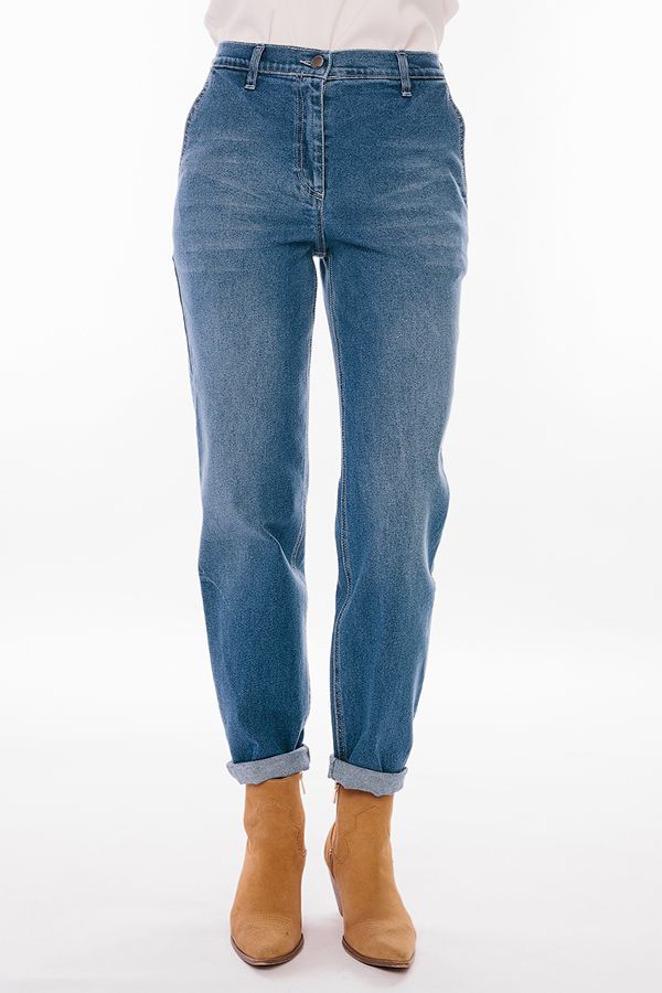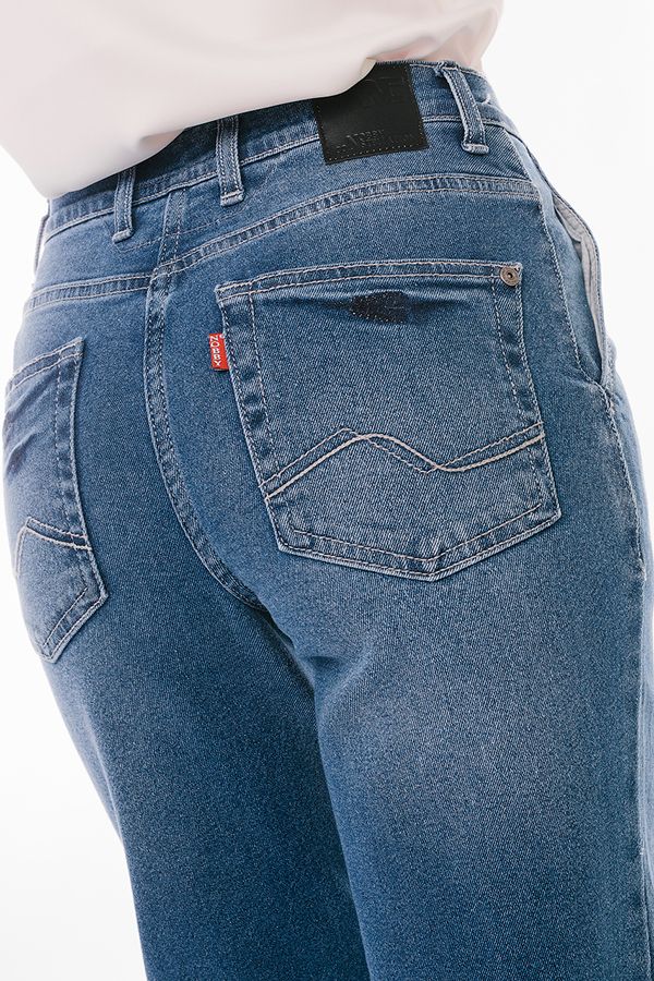 Молодежные джинсы-бананы. Детали: спереди застежка на молнию и пуговицу, боковые карманы с отрезным бочком, сзади под кокеткой накладные карманы с хольнитенами. На поясе шлевки. По линии низа брюк оригинальная отделка - две вертикальные вытачки. Длина по внутреннему шву - 75 см. Ширина по линии низа - 15 см. *Числовые параметры соответствуют размеру 44. Размер модели на фото: 44. Параметры модели: 86-63-94. Рост модели на фото: 173 см.