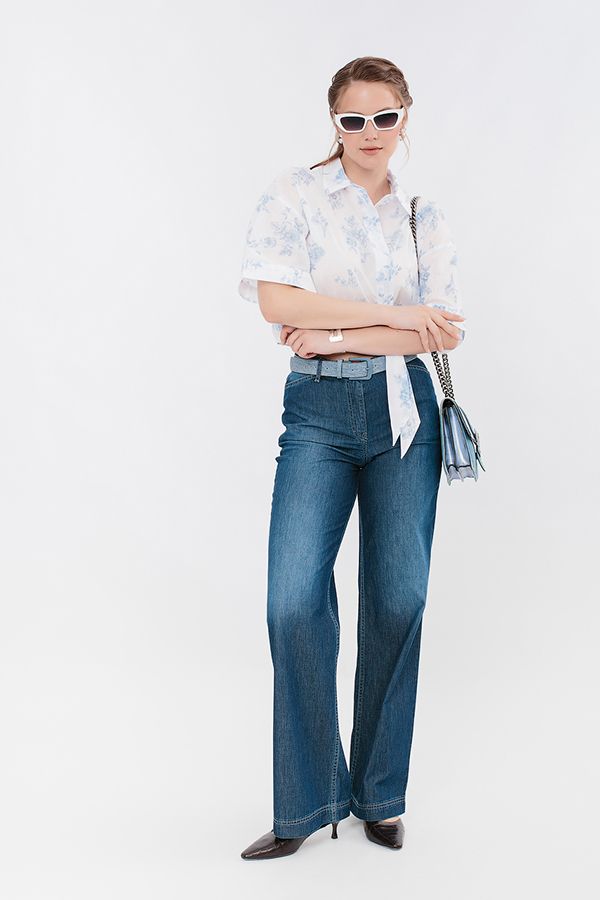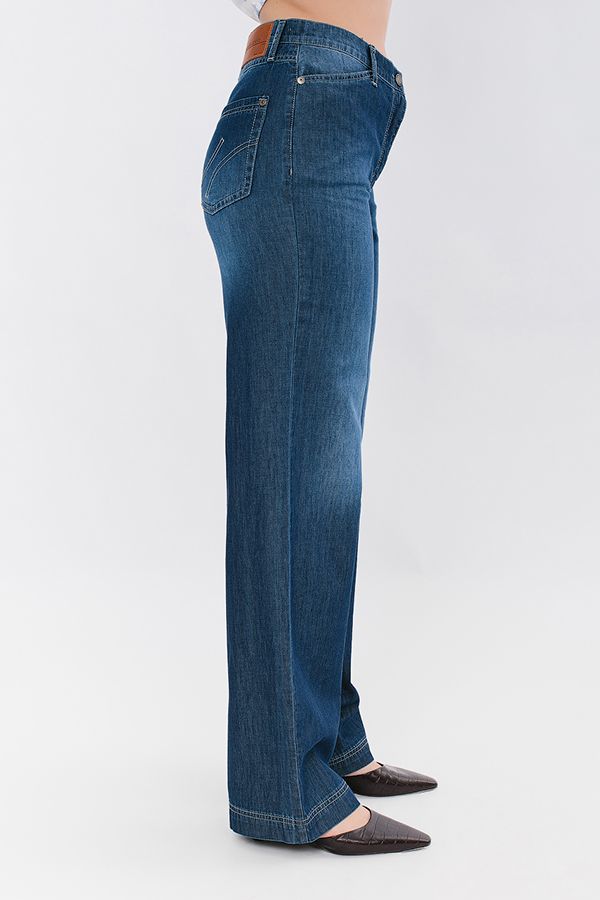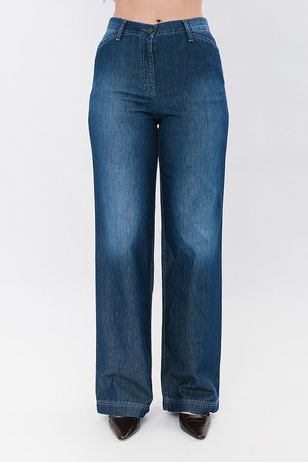 Модные молодежные джинсы из тонкого денима. Детали: спереди застежка на болт и молнию, оригинальные боковые карманы с хольнитенами, сзади под кокеткой накладные карманы с фигурной строчкой, на поясе шлевки. Длина по внутреннему шву - 85 см. Ширина по линии низа - 25 см. *Числовые параметры соответствуют размеру 42. Размер модели на фото: 46. Параметры модели: 94-65-100. Рост модели на фото: 175 см.
