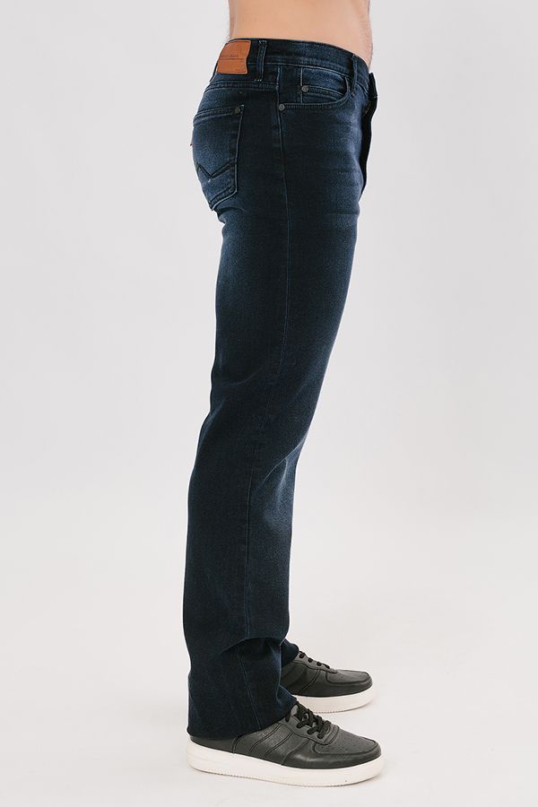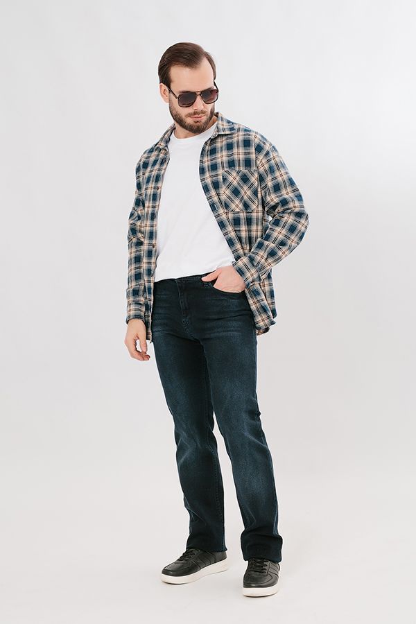 Мужские джинсы " 5 карманов". Детали: спереди застежка на молнию и болт, боковые карманы, карман для мелочи, сзади, под кокеткой накладные карманы, на поясе шлевки. На карманах хольнитены. Длина по внутреннему шву - 88 см. Ширина по линии низа - 20 см. *Числовые параметры соответствуют размеру 50. Размер модели на фото: 50. Параметры модели: 104-80-106. Рост модели на фото: 183 см.