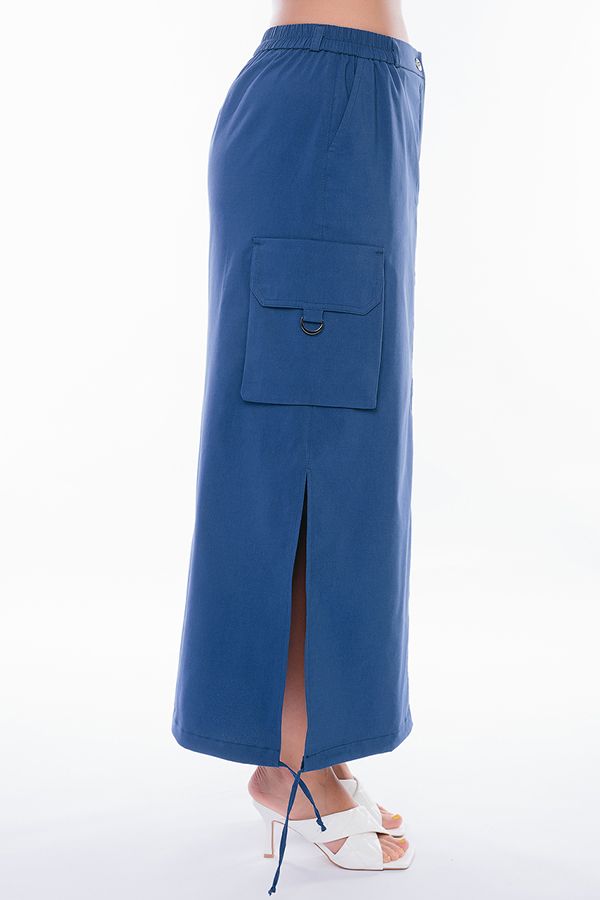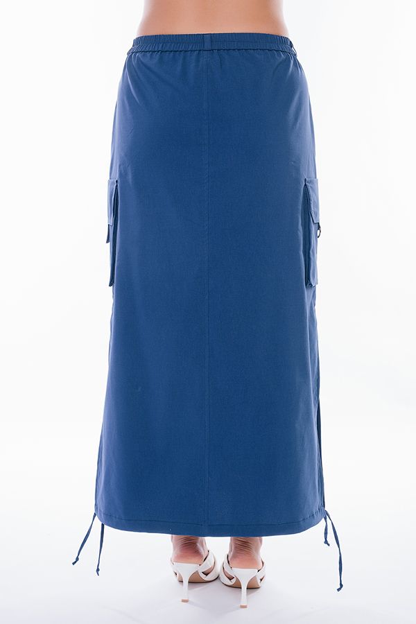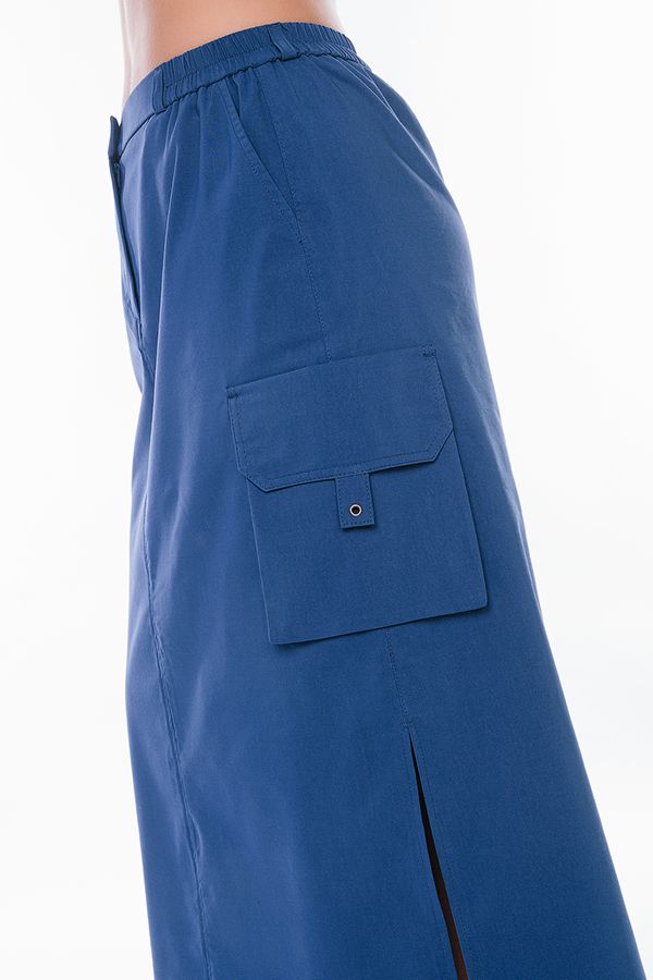 Юбка из легкого бенгалина в стиле "карго". Юбка длинная, прямого силуэта. По переду карманы с отрезным бочком, застежка на молнию и пуговицу, в поясе резина. На поясе шлевки. По бокам юбки объемные накладные карманы с клапаном, По низу кулиска. В боковых швах разрезы. Длина изделия- 91 см. Размер модели на фото: 48. Параметры модели: 94-68-102. Рост модели на фото : 175 см.