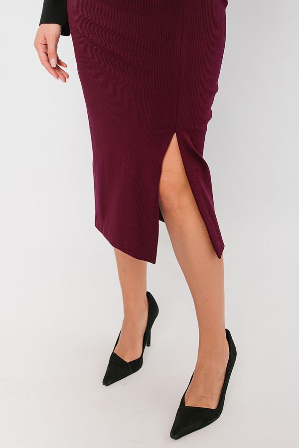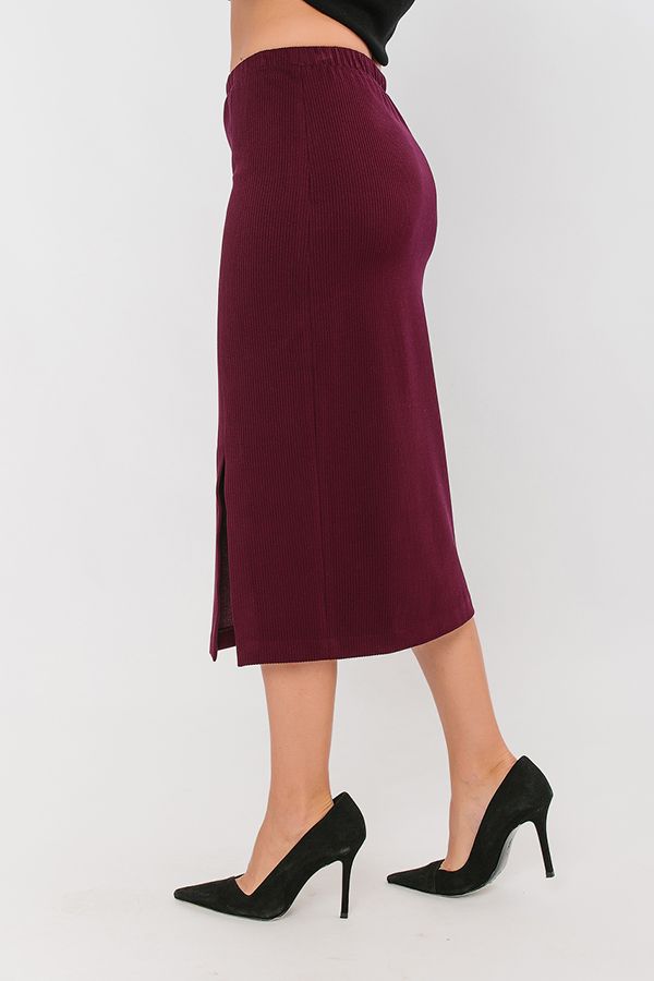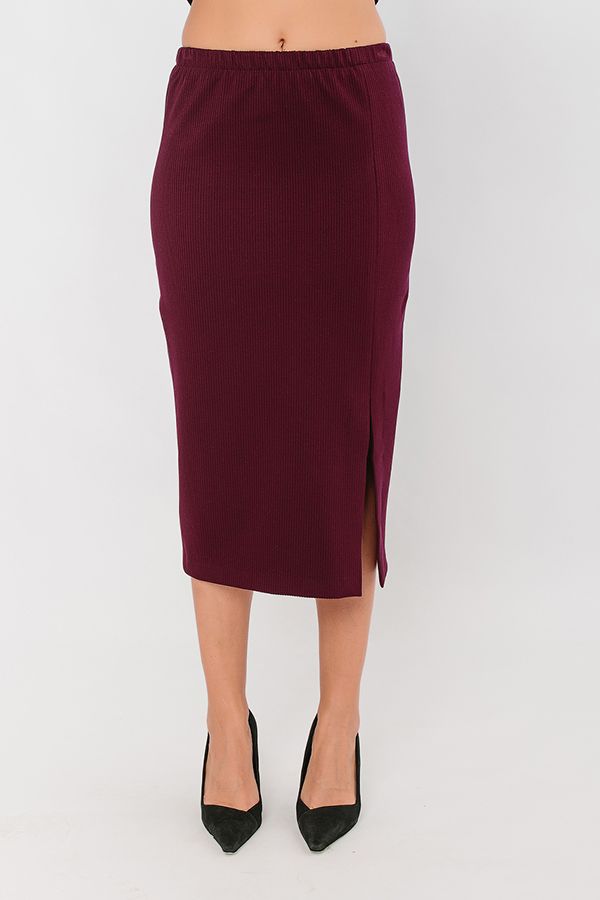 Элегантная юбка из трикотажного вельвета, на подкладе. Длина миди. По передней половинке, слева разрез.  В поясе резина.  Длина изделия 77 см. Размер модели на фото: 4 4.Параметры модели:  86-63-94. Рост модели на фото: 173 см.