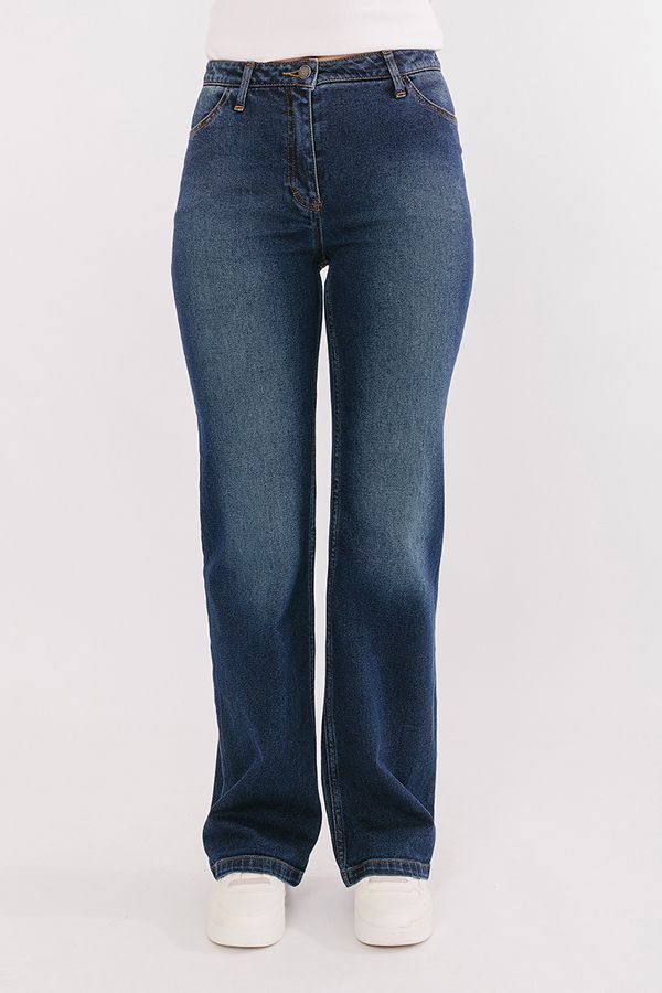 Прямые джинсы с модным эффектом "состаривания". Детали: спереди застежка на болт и молнию, боковые карманы с хольнитенами, сзади под кокеткой накладные карманы с фигурной строчкой, на поясе шлевки. Длина по внутреннему шву - 82 см. Ширина по линии низа - 23 см. *Числовые параметры соответствуют размеру 46. Размер модели на фото: 44. Параметры модели: 86-63-94. Рост модели на фото: 173 см.